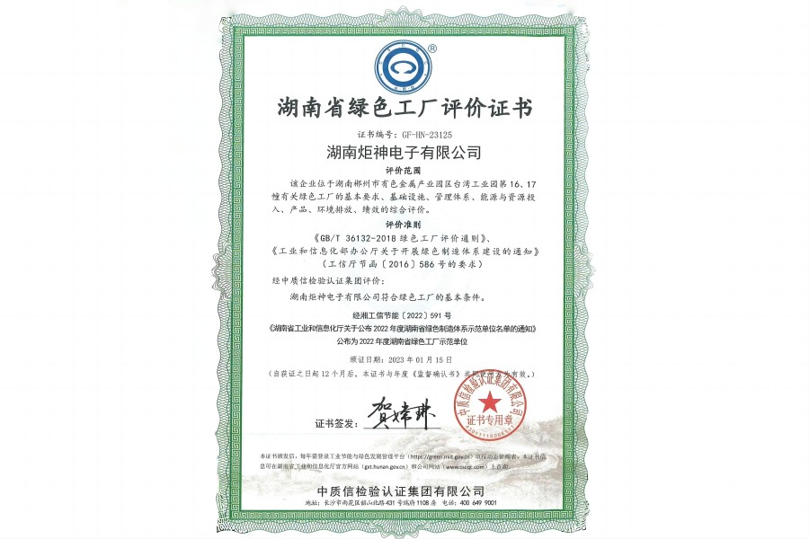 湖南省綠色工廠評(píng)價(jià)證書(shū)